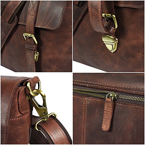 -. Brand : LEATHER CASTLE -. Color : Brown -. Department : mens -. Feature : Genuine Leather Briefcase Messenger Bag Made with Finest Quality 100% GENUINE BUFFALO LEATHER. Beautifully handcrafted by traditionally skilled artisans from India. / Measurements ( In cms ) - 37 (Length ) x 27 ( Height ) x 6 ( Width) . Perfect size to fit a 15 Inch Laptop or MacBook / Front: 2 large split pockets, Inside - 1 cushion padded compartment for laptop, 2 small pockets for mobile, 1 pen pocket / 1.5 inch wide and 58 inch long adjustable & detachable leather shoulder strap with double hand carry. On each end, there is a hand carry to carry this bag in hand or on shoulder. / Attractive Brush-Stroke Design for Enhanced Look. Heavy Duty Matching Antique Brass Fitting Accessories. Heavy duty POLYSTER lining inside. -. Label : Ismail Exports -. Manufacturer : Ismail Exports -. PackageQuantity : 1 -. ProductGroup : Apparel -. ProductTypeName : LAGE -. Publisher : Ismail Exports -. Size : Medium -. Studio : Ismail Exports -. Title : LEATHER CASTLE's Crazy Hunter Buffalo Leather Messenger Bag Office Briefcase 15 Inch Laptop Satchel Business Shoulder Crossbody Bag Men Women