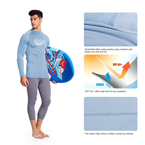 Baleaf Men's Long Sleeve Surf Shirt Rashguard Swim Tee UPF 50+ Blue Size XXL