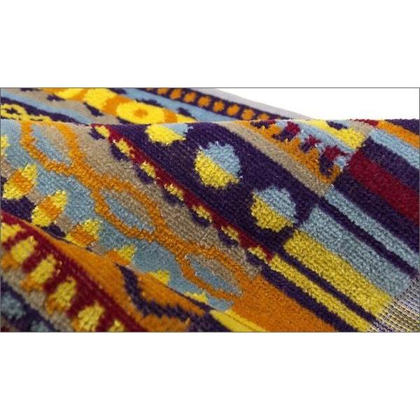 | 個性あふれる派手な柄がポイント!!確かなボリューム感が高級タオルの貫禄を醸し出しています。個性的な柄が生活を華やかに彩ってくれるはず! シャーリングといって、パイルの先端をカットする加工がされてあるので、糸の撚りがほどけて肌触りが通常のパイルよりも柔らかくなっています。 |