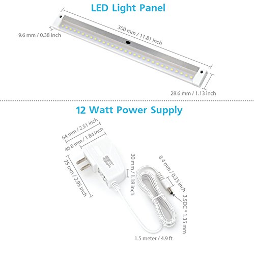 [New] EShine White Finish 12 inch LED Dimmable Under Cabinet Lighting! Hand Wave Activated - Touchless Dimming Control, Cool White (6000K)