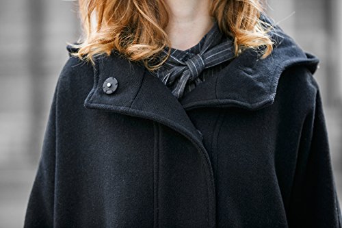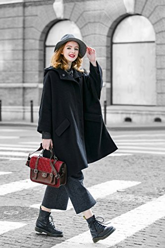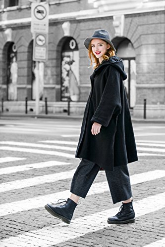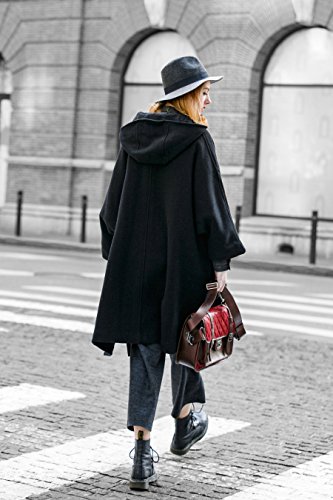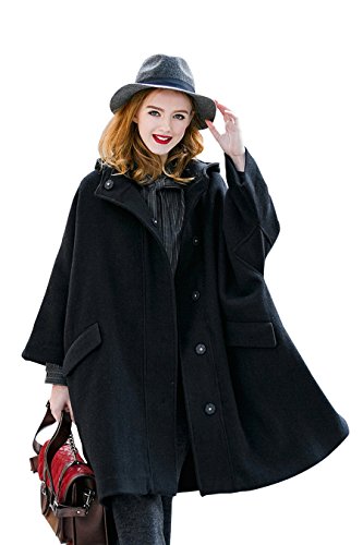 -. Title : 特売セール- YOU.U レディース冬ウールブラックコート 羊毛ケープスタイルジャケット 七分袖 フード付き