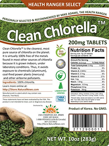 -. Binding : Health and Beauty -. Brand : NN STORE -. EAN : 0029882516447 -. Feature : Gram per gram, chlorella contains: / Over 15 times the phosphorous of spinach / 30 times the magnesium of milk / Nearly 10 times the potassium of milk / 5 times the protein of eggs -. IsAdultProduct : 0 -. Label : NN Store -. Manufacturer : NN Store -. PackageQuantity : 1 -. ProductGroup : Health and Beauty -. ProductTypeName : HEALTH_PERSONAL_CARE -. Publisher : NN Store -. Studio : NN Store -. Title : Clean ChlorellaTM 200mg Tablets (10oz, 283g) -. UPC : 029882516447