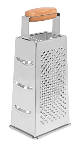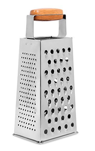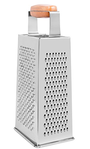 Internet’s Best Stainless Steel and Bamboo Box Grater | 4 Sided Grater and Slicer | 9.5 Inch | Hand Shaver for Cheese Fruit Vegetable Root Nuts | Wood Handle