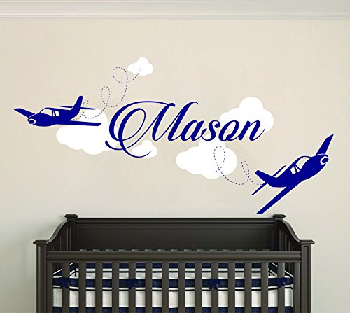 -. Title : Personalized Name Airplane And Clouds - Baby Boy - Wall Decal Nursery For Home Bedroom Children(741)