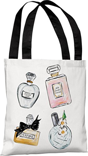 One Bella Casa Perfume Bottles/Sparkles Tote Bag by Timree Gold, 18"x 18", White/Multi