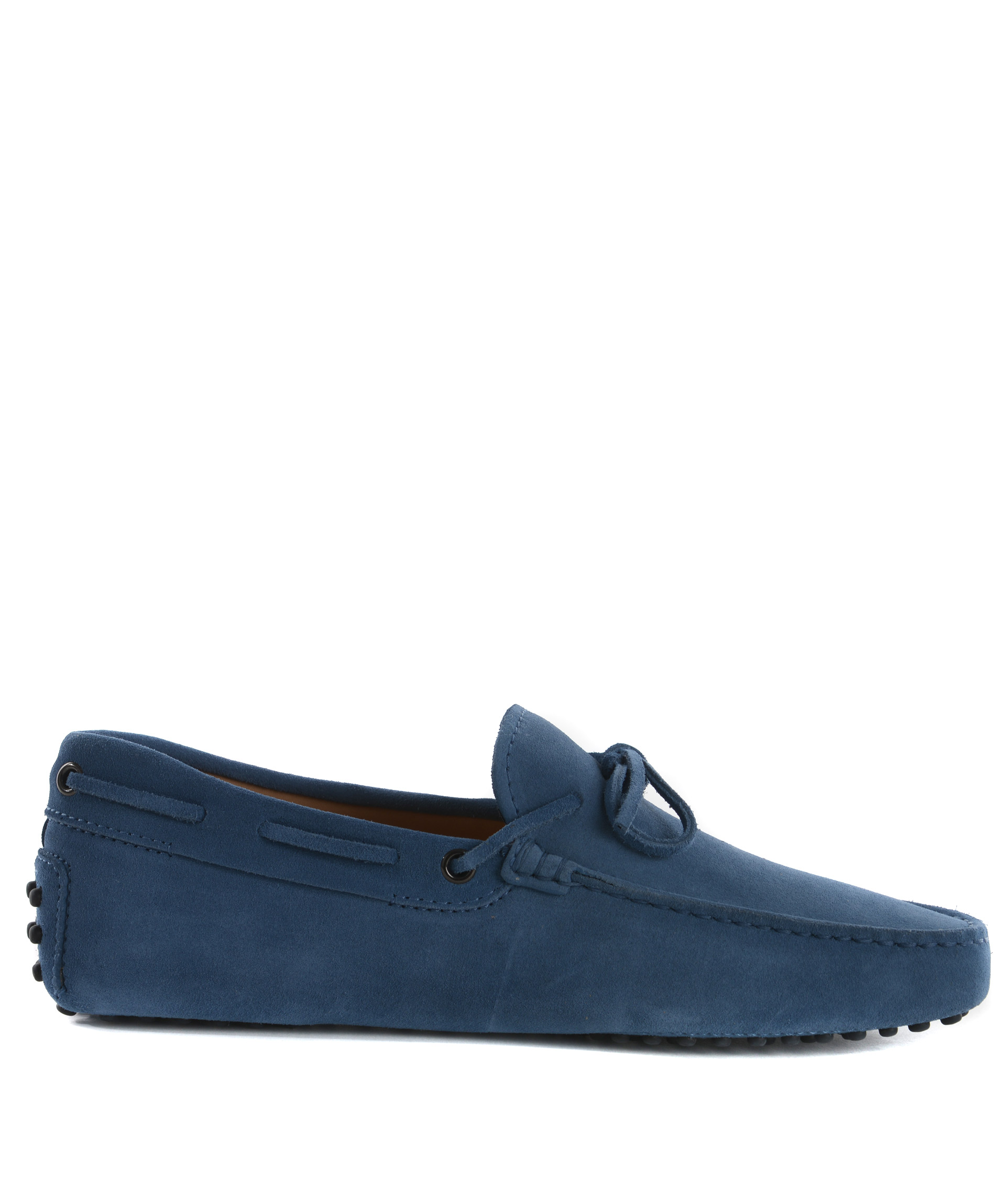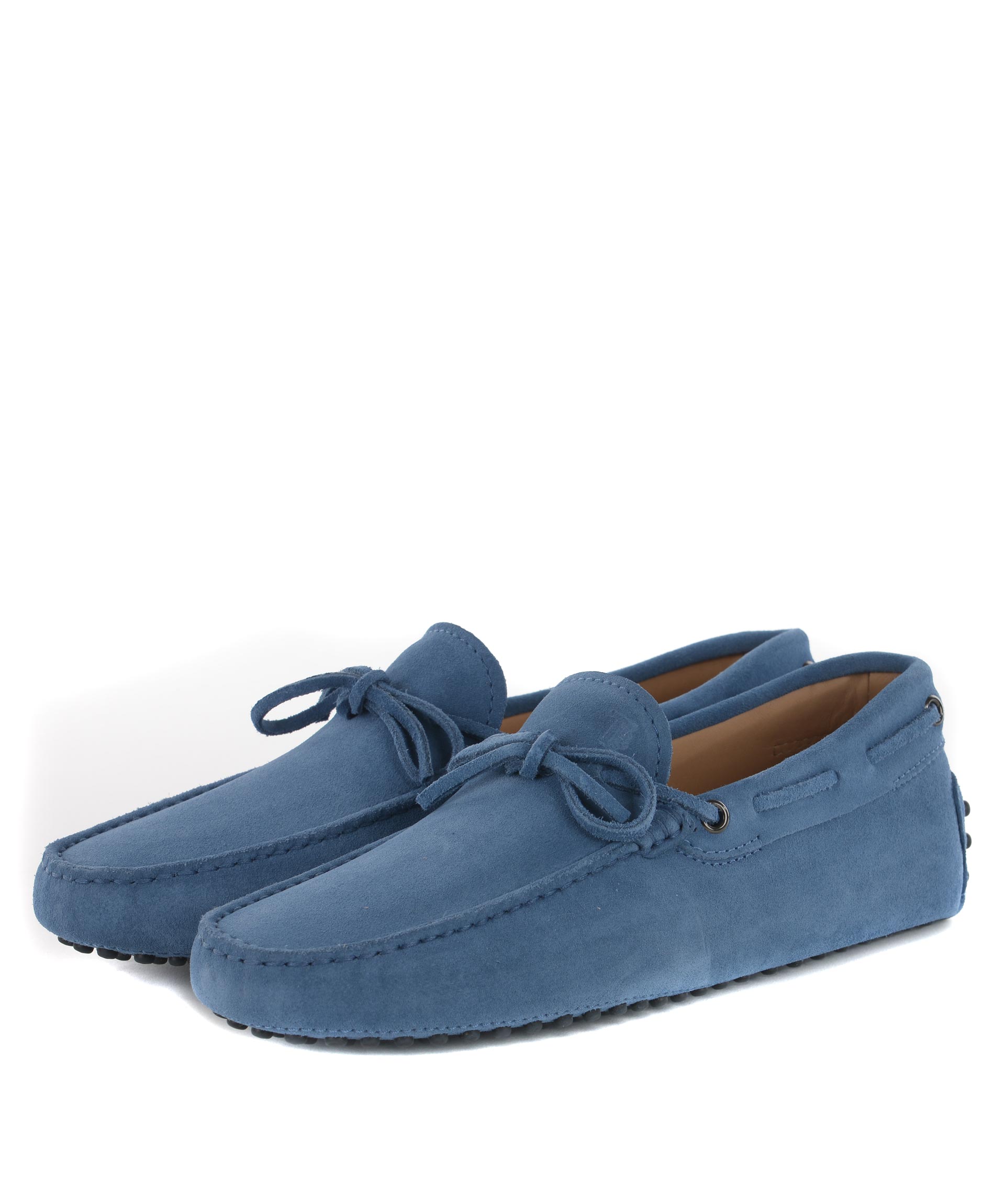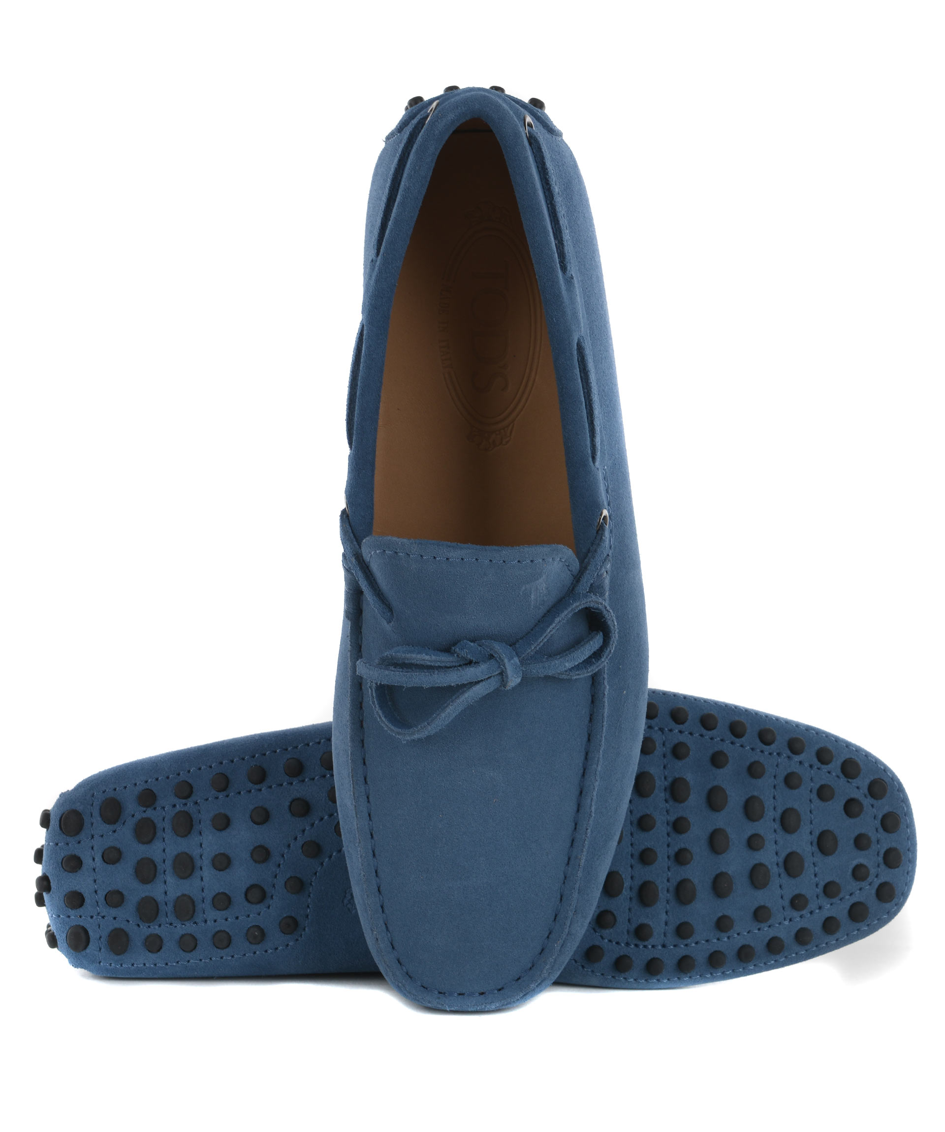 Gommino Driving Shoes from Tod's: Blue Gommino Driving Shoes with round toe, branded insole and front lace fastening.