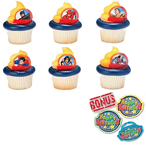 Justice League Brave & Bold Cupcake Toppers and Bonus Birthday Ring - 25 piece