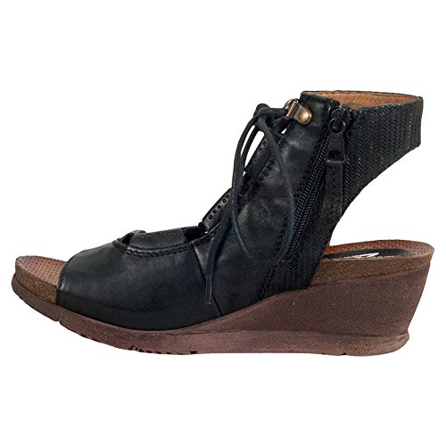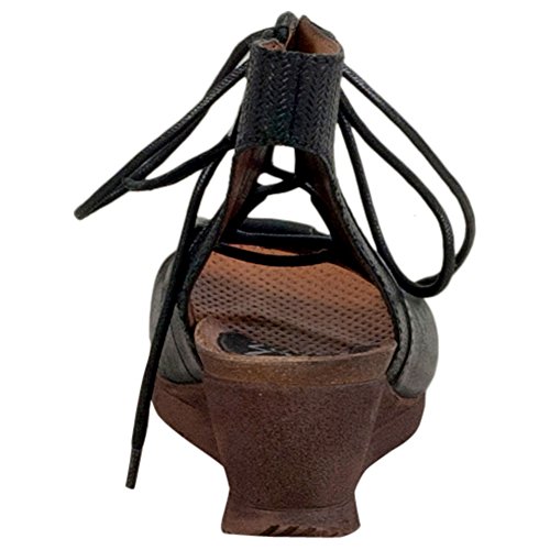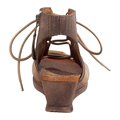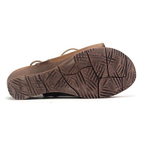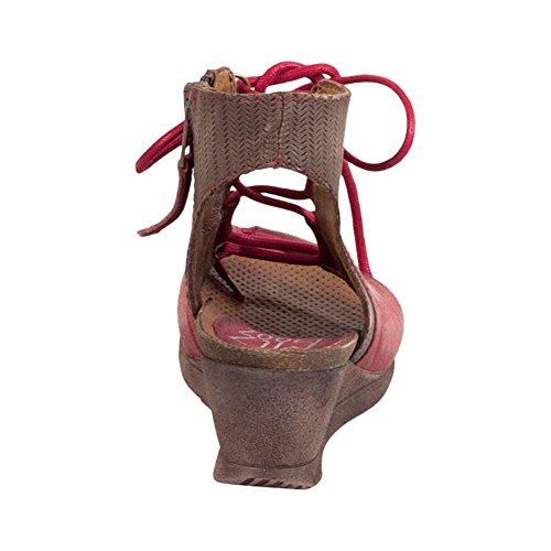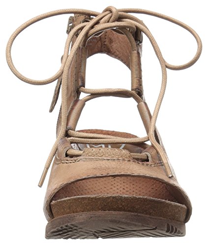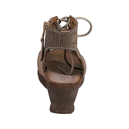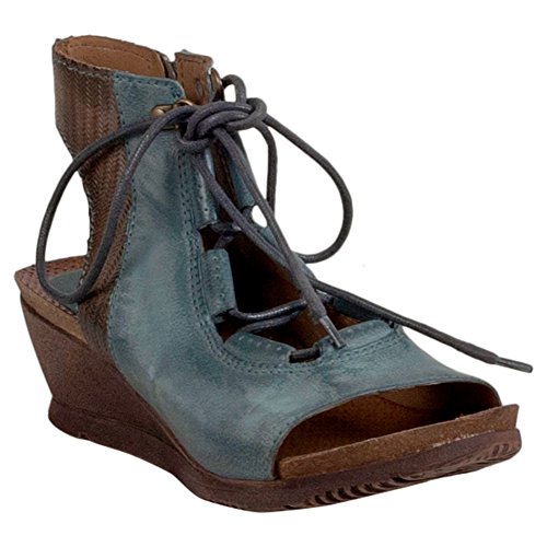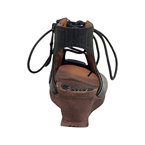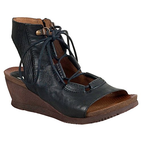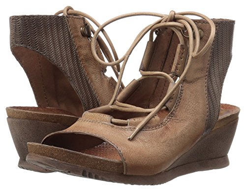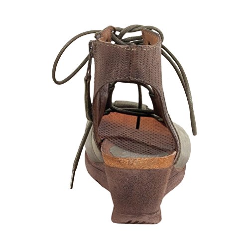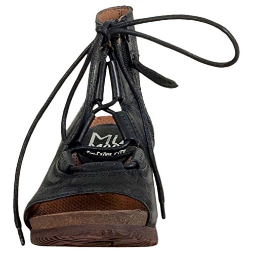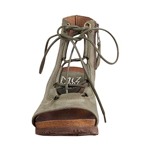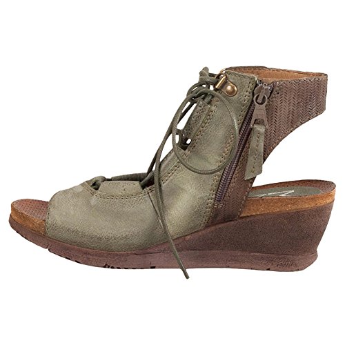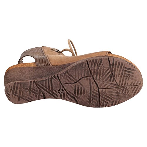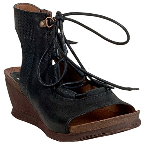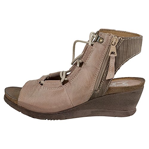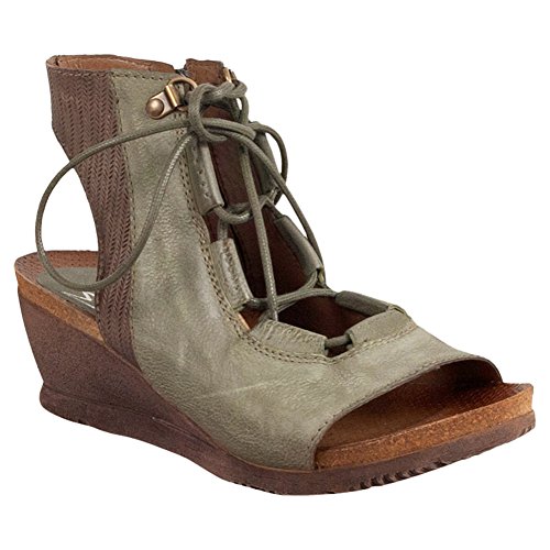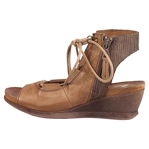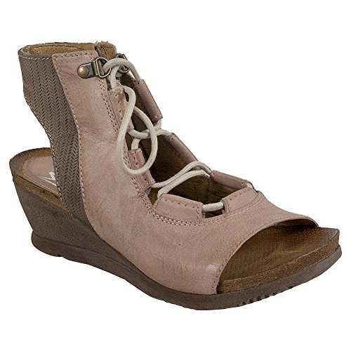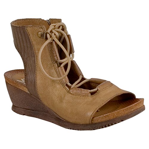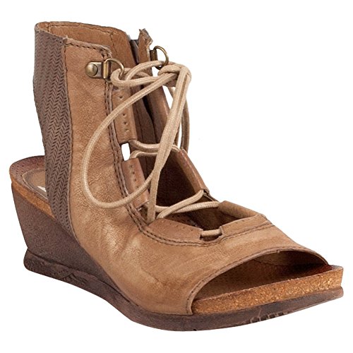 Product DescriptionA gladiator sandal boosted by a wedge heel, the Miz Mooz satine features a corseted laceup front, leather lining with super comfortable cork footbed and 2.25” wedge heel0