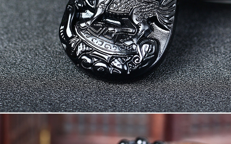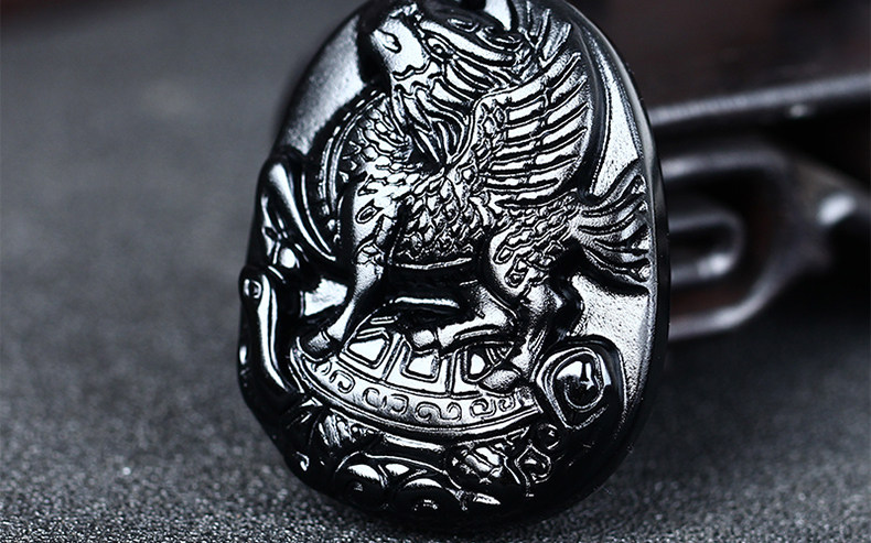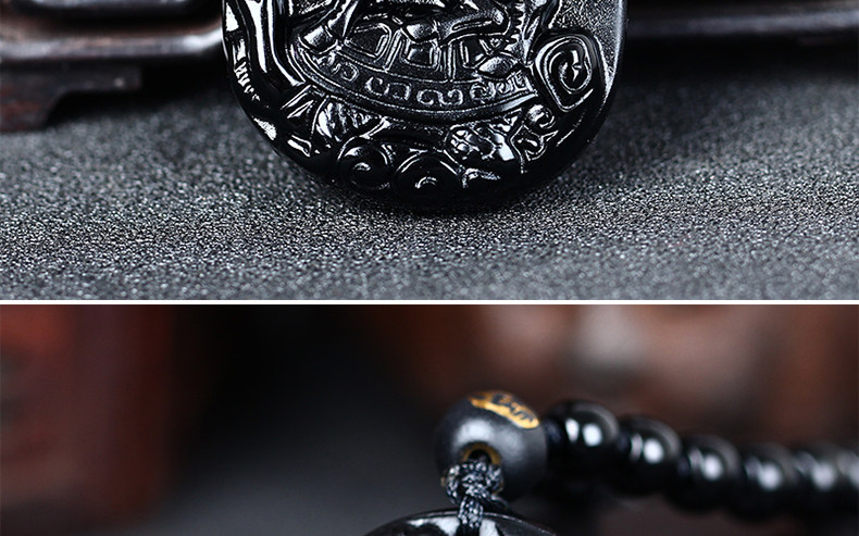 开光生肖属虎吉祥物龙骏登龟开运吊坠淘运灵阁龙马乘龟黑曜石吊坠