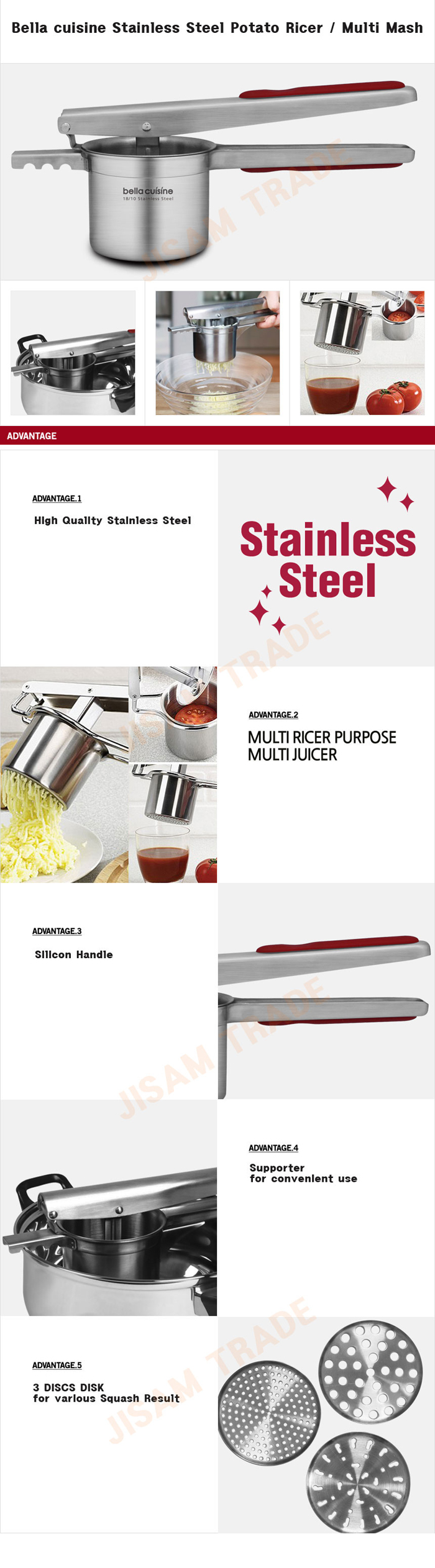 [Bella Cuisine]Potato Ricer Mash Multi Food Press Squasher