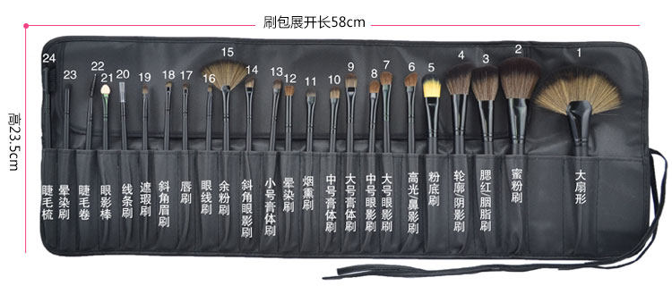 温馨提示:此套24支化妆刷套装包含有4支小马毛的刷子!且新套刷做好就封装在PU包里面里没有透气,加上运输需要包装严实,无法透气,有一点点味道是正常现象,亲们在请收到货后请打开放在通风处或者室外晾晾即可散掉哦~~~~谢谢!!