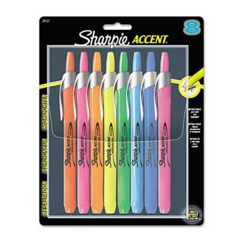 -. Title : Sharpie Accent Retractable Highlighters, Chisel Tip, Assorted Colors, 8/Set