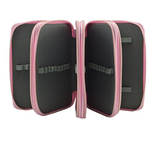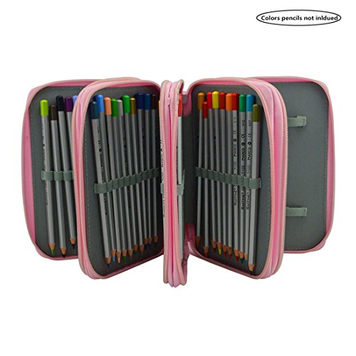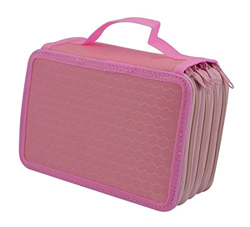 Students Pencial Case 72 Slots Pencil Organizer Large Capacity Multi-layer Pen Bag Pouch Stationary Case Portable Makeup Cosmetic Case Bag (Pink)