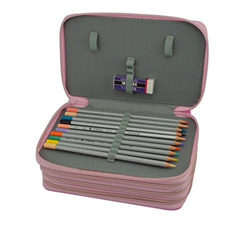 Individual Holder: 4 layers and 4 zippers design,each pencil has its own individual holder, elastic strap holds each pencil or pen securely and prevent them from falling out or being stepped on. Handy Pencil Case: The handle makes it convenient to travel with your pencils, a perfect case for travelers who love coloring and drawing.