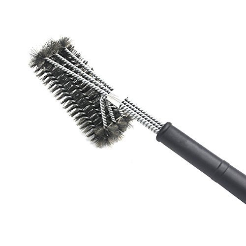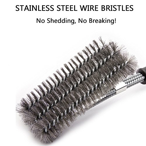 Firmly triple stainless steel shafts structure is wrapped by the metal clip tightly for concentrating cleaning power on all types of grill grates
