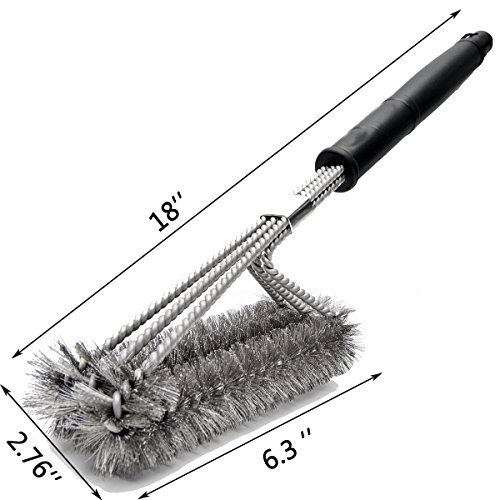 BBQ Grill Brush – 18 Inches 3 in 1 Stainless Steel Barbecue Grill Cleaning Brush with Wire Bristles & Long Handle & Strength Clip