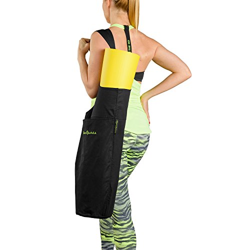 TWO POCKETS AND COMFORTABLE SHOULDER STRAP- One large side pocket for water bottle, towel, yoga block and shoes. One small interior zipper pocket perfect for keys, cards, phone or other small personal items you need at the yoga studio or gym.This is the most easy carrying yoga mat bag you will ever find!