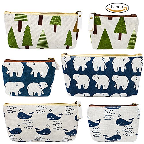 VAMAI Pen Pencil Case Stationery Coin Pouch Cosmetic Makeup Bag with Canvas Zipper Pen Bag 6 Pack
