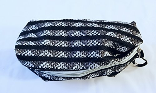 Crocheted Mesh Striped Zippered Case Pouch (Monotone)