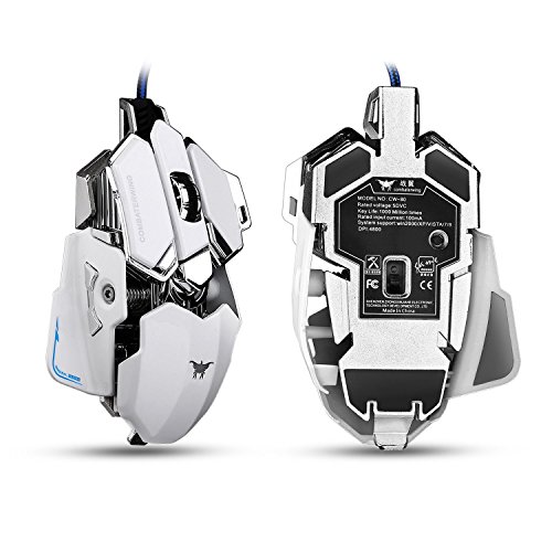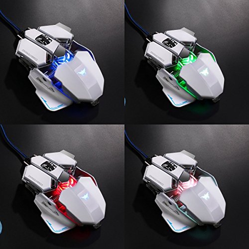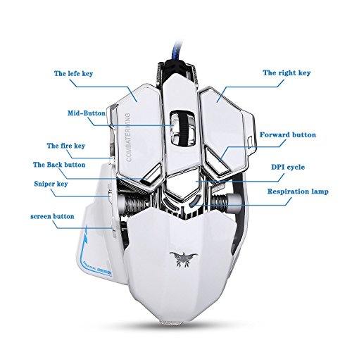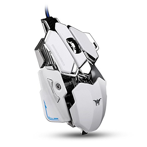 Combaterwing Gaming Mouse 4800 DPI Aluminum Base, 10 Buttons, RGB LED Professional Programmable USB Wired Gaming Mice for PC Laptops Computer Pro Gamer (White) B018QQGYJ0
