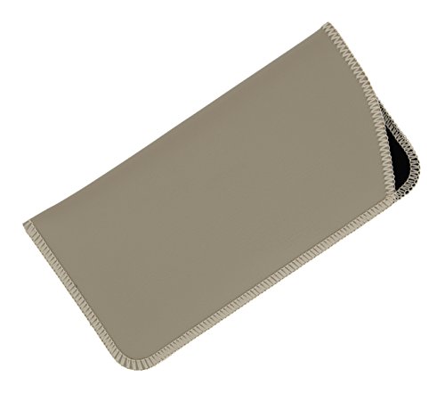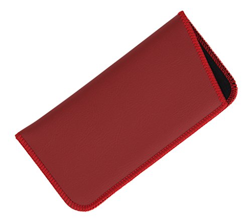 Binding : Apparel Product Description This high quality soft faux leather classic slip-in case comes in two sizes (medium and large) and a variety of colors to suit your style (red, blue, beige, and gray). The large sized case will accommodate most larger eyeglass and sunglass frames while the medium case is more suitable for holding slim-framed reading glasses. Get this combination pack and have both sizes for every pair of glasses you need to keep protected! The exterior is made from a textured faux leather material- a classic and refined choice to protect your eyeglasses. The interior features a padded plush nylon lining for added protection from scratches. This slip case also has serge-stitched binding for extra strength around the edges. MEDIUM size exterior dimensions in INCHES: 3.13 in wide and 6.25 in long. LARGE size exterior dimensions in INCHES: 3.5 in wide and 6.75 in long. MEDIUM size exterior dimensions in CENTIMETERS: 8.0 cm wide and 16 cm long. LARGE size exterior dimensions in CENTIMETERS: 9.0 cm wide and 17.5 cm long. Hand packed with love in Dallas, Texas. 0