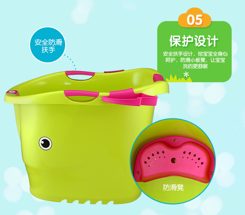 2017 new design, abandon the traditional oval-shaped old appearance, the barrel lengthened to 78cm, the whole network child barrel the longest size, baby bath legs can stretch open, bath more comfortable, high-end products.