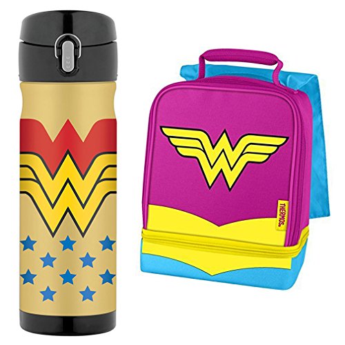Thermos 16 Ounce Stainless Steel Commuter Bottle and Wonder Woman with Cape Dual Compartment Lunch Kit