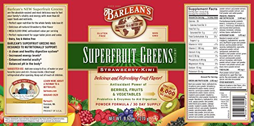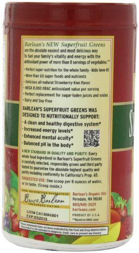 Barlean's Organic Oils Superfruit Greens, Strawberry Kiwi, 9.52 Ounce