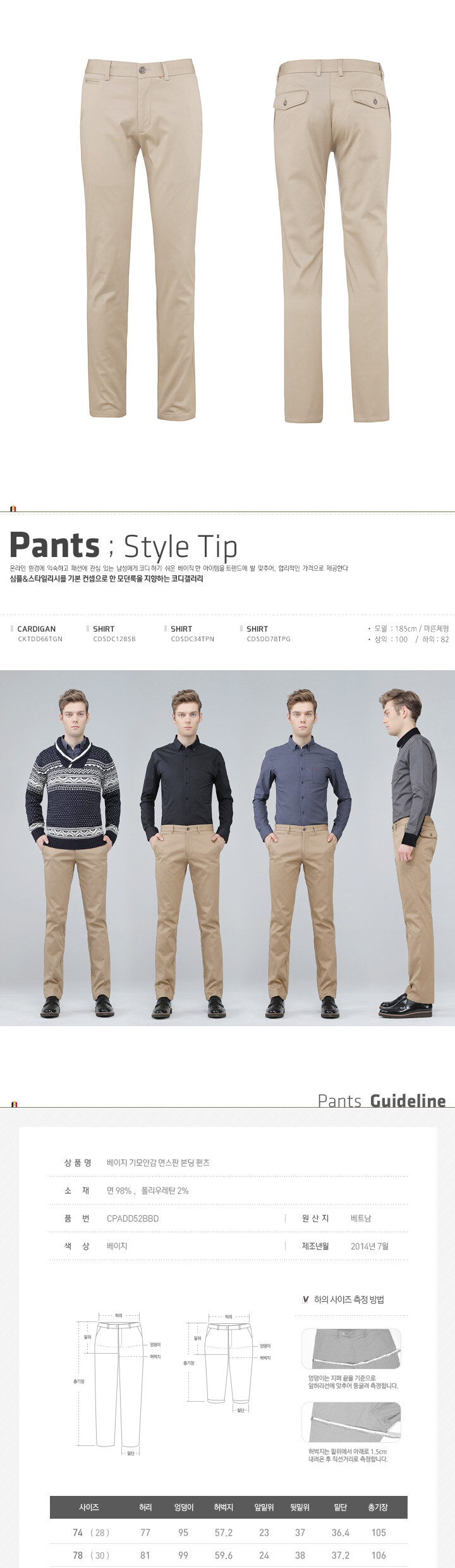 サイズ(cm):74,78,82,86,90サイズ ウエスト ヒップ もも 股上 裾幅 総丈 74 77 95 57.2 23/37 36.4 105 78 81 99 59.6 24/38 37.2 106 82 85 103 62 25/39 38 107 86 89 107 64.4 26/40 38.8 108 90 93 111 66.8 27/41 39.6 109