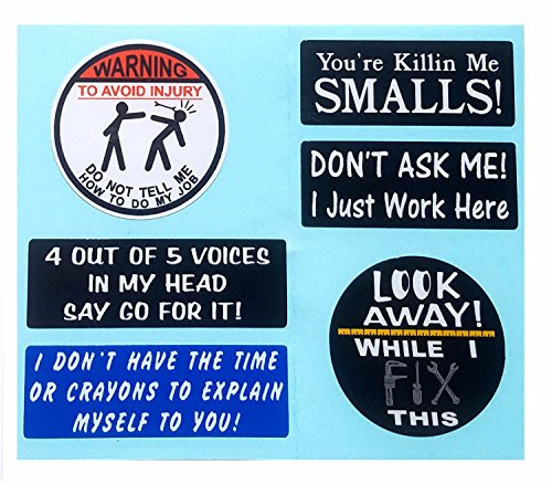 WARNING To Avoid Injury Do Not Tell Me How To Do My Job, Look Away, I don't have the time or crayons, killin me smalls, I Make Decals, Batch Hard Hat vinyl decal car sticker