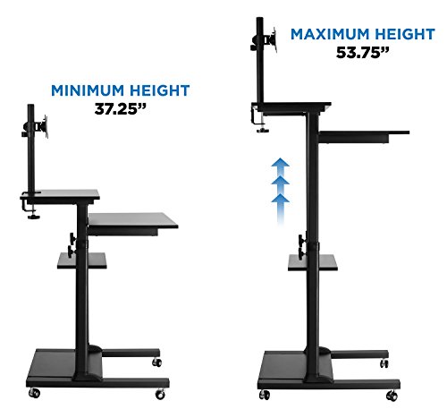 -. Title : Mount-It! Mobile Stand Up Desk / Height Adjustable Computer Work Station Rolling Presentation Cart With Monitor Arm (MI-7942B)