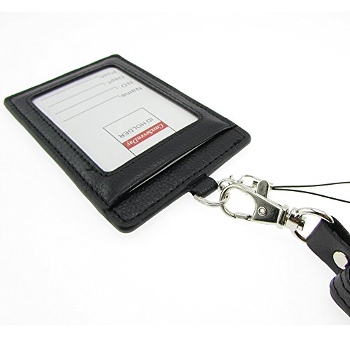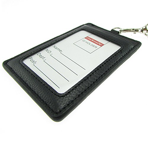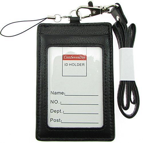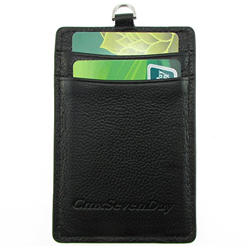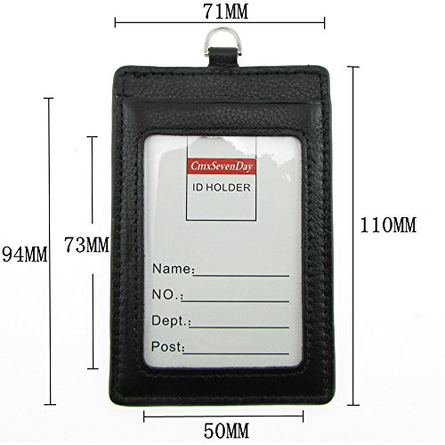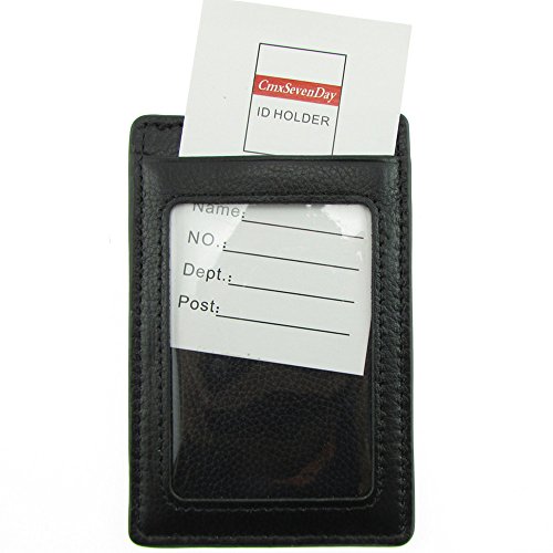 Cmxsevenday C68805 Genuine Leather ID Card Holder with 1 ID Window and 2 Card Slot, Vertical Style - Black