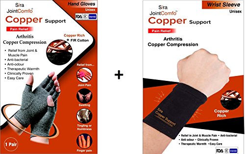 -. Title : Sira Copper Compression Hand Gloves & Wrist Sleeve, Arthritis Relief,Swelling, Muscles Joints Pain, Rheumatoid,Osteoarthritis,Finger Pain Relief, Copper Compression Sleeve, Carpal Tunnel Syndrome