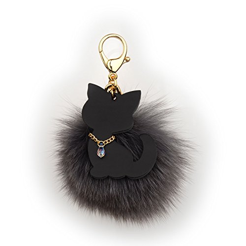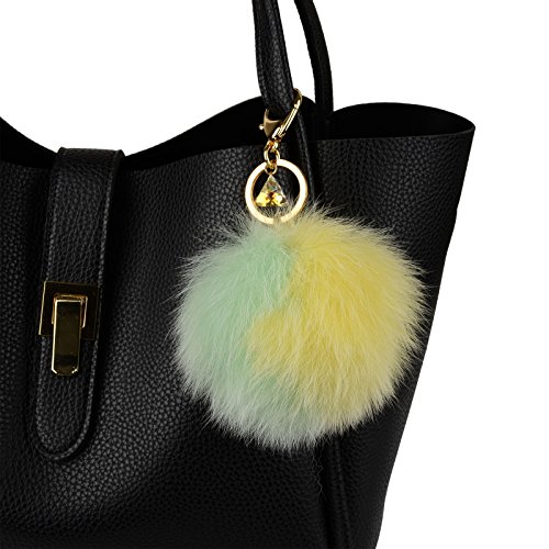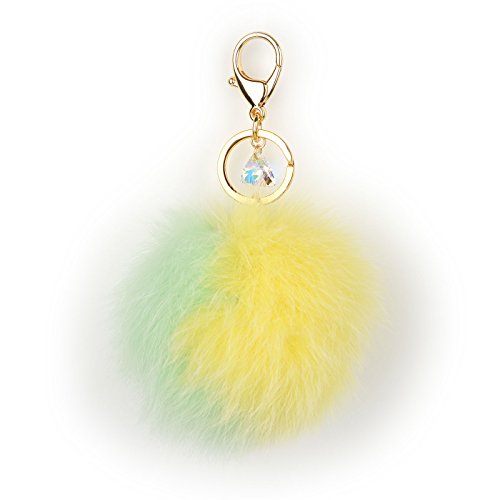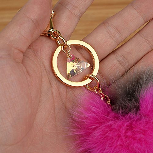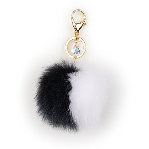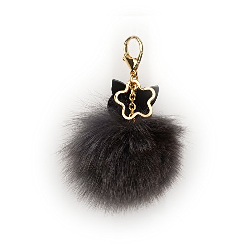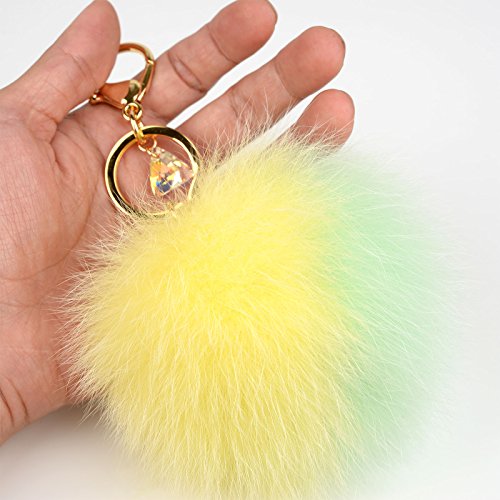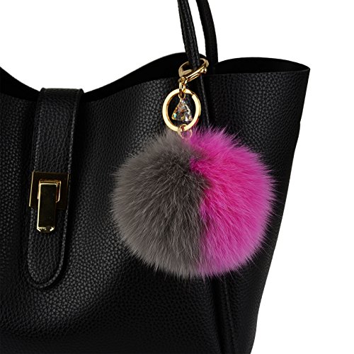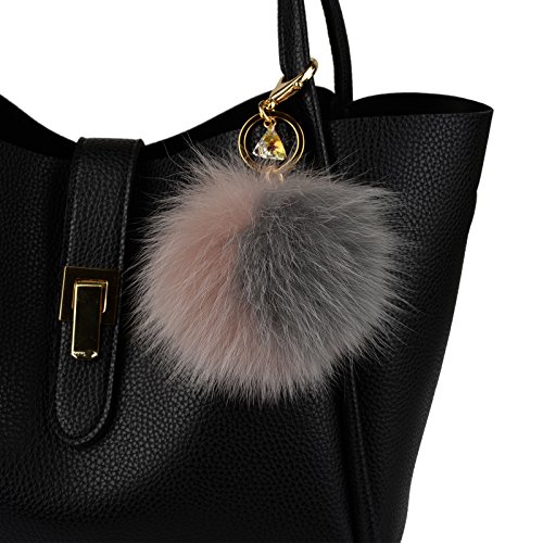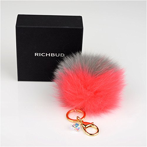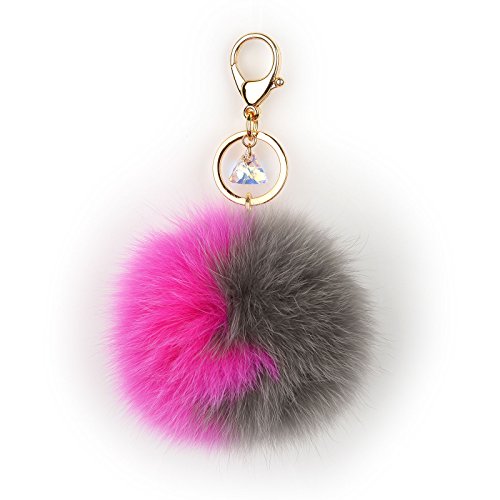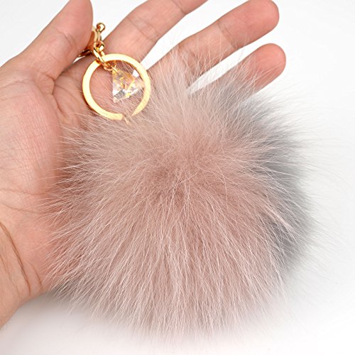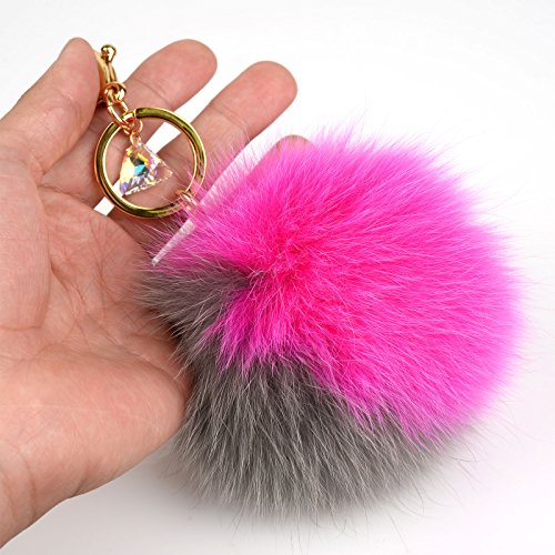 - Genuine Fox Fur - 10cm~13cm Large real fox fur pom pom with Austrian Crystal lobster hook keychain and gold plated key ring.