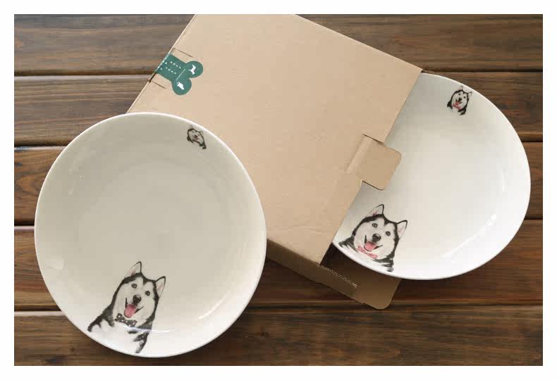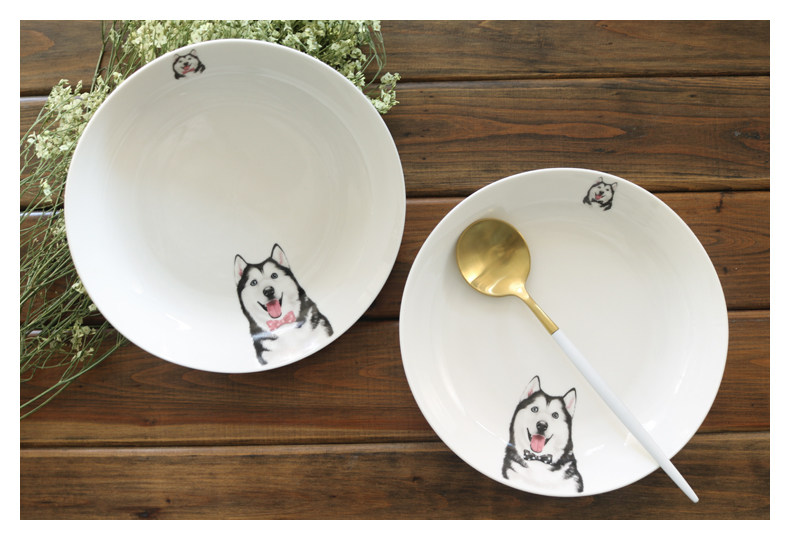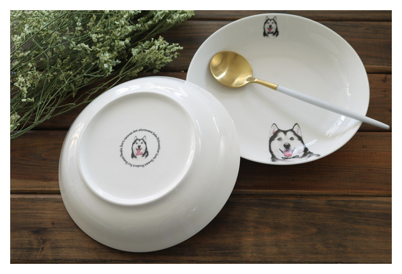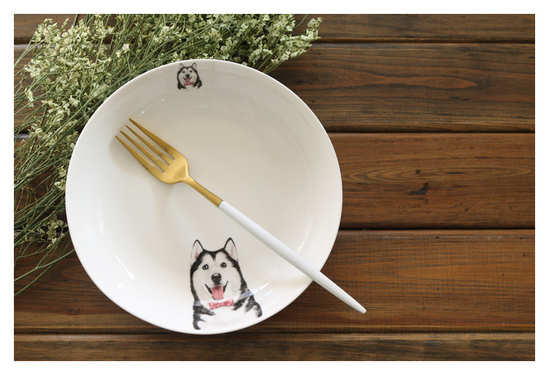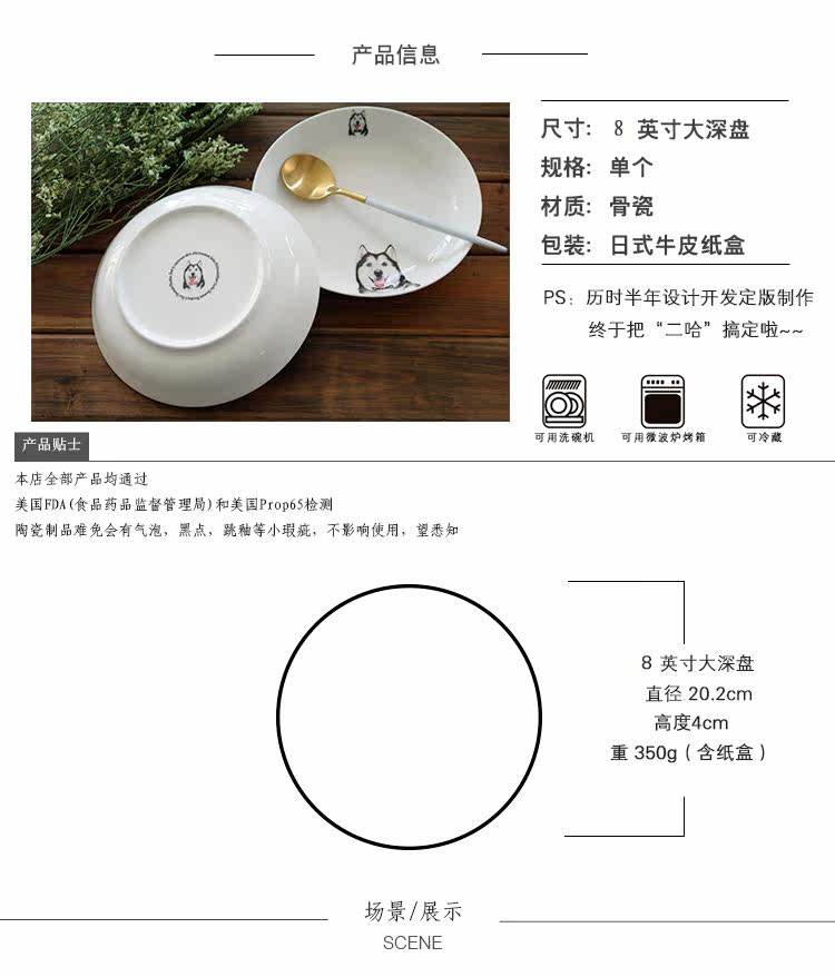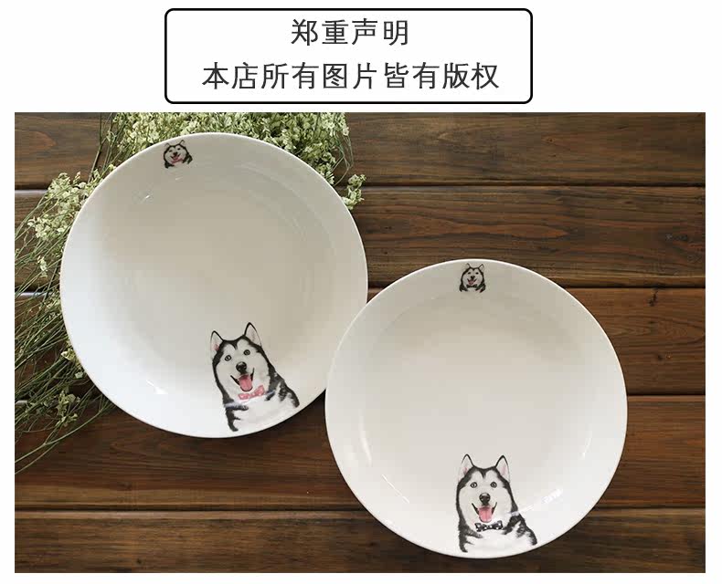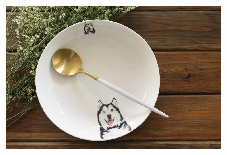 北欧卡通动物陶瓷西餐盘子牛排圆盘点心盘21cm大深盘家用炒菜盘子