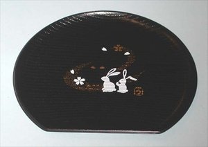 (JapanBargain)/Kitchen Dining/Tableware/DIRECT FROM USA/Japanese Plastic Half Moon Sushi Plate Bunny Black #1926