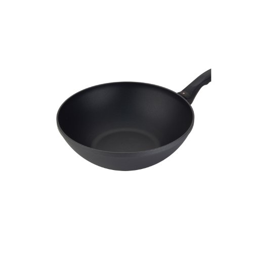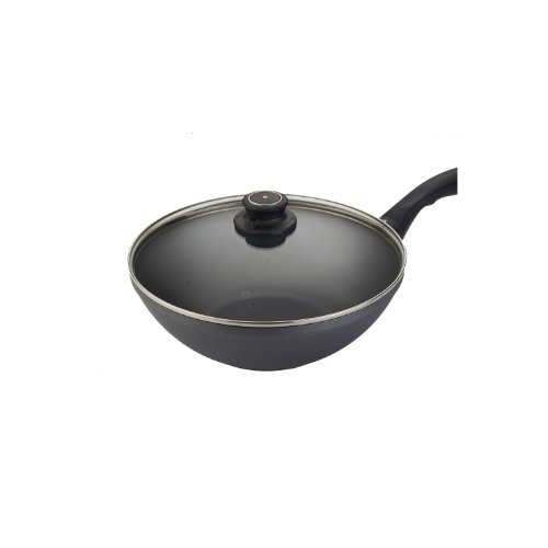 The Swiss Diamond 28 cm (1”) wok combines the easy clean-up and healthy cooking ability of nonstick with the traditional benefits of woks, such as sloped sides for easy tossing. With a roomy cooking surface, it also works well as a chef pan. No wok ring required - it features a perfectly flat aluminum base. Includes lid. The included tempered glass lid allows you to monitor food without lifting the cover, maintaining flavor and keeping food from drying out. The rotating lid knob opens or closes a steam vent to release or contain moisture as needed. Used by discerning home chefs around the world, Swiss Diamond’s PFOA-free cookware features unsurpassed nonstick performance for healthy cooking and easy clean-up. The patented nonstick coating, reinforced with real diamond particles, allows oil-free cooking and cleans up with just warm soapy water. No more scrubbing and soaking! Swiss Diamond’s patented nonstick coating is reinforced with real diamonds for excellent durability and resilience. Why diamonds? Three reasons: they are durable, they are naturally nonstick, and they conduct heat better than any metal. A perfect combination for a lifetime of cooking excellence. Swiss quality is visible in every aspect of Swiss Diamond cookware. Heavy-duty cast aluminum will never warp, while the perfectly flat base distributes heat evenly and will not tip or spin. The rivet-free interior prevents unsightly food build-up that can lead to bacterial growth. The ergonomic handle, designed for comfort and balance, stays cool on the stovetop. All Swiss Diamond products are oven-safe up to 500 degrees F (260 degrees C) and suitable for use on gas and electric cooktops – induction series sold separately. Made in Switzerland with an eco-friendly production process.Feature