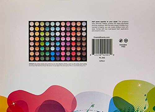 Add a little sparkle to your eyes with our Ultra Shimmer Palette. This gorgeous palette contains 88 different fully shimmer shadows that are highly pigmented. With the wide range of shades from neutrals to brights you can create endless looks with ease. The shadows can be applied dry or wet with the dual end foam tip applicators included or any eye shadow brush from your collection. The matte black case contains the Coastal Scents logo as well as the name of the palette for convenience.Feature