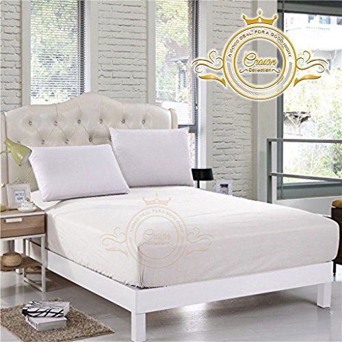 Crown Collection Hotel Beddings 600-Thread-Count 100% Egyptian Cotton 1 Piece Fitted Sheet With 12" Deep Pocket King Size Damask Solid, White