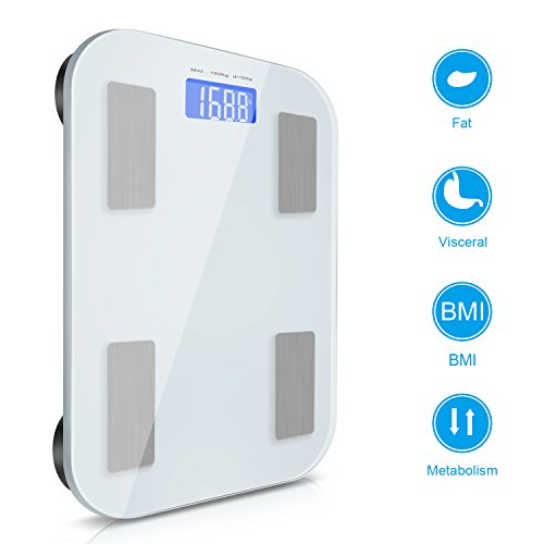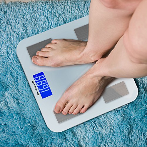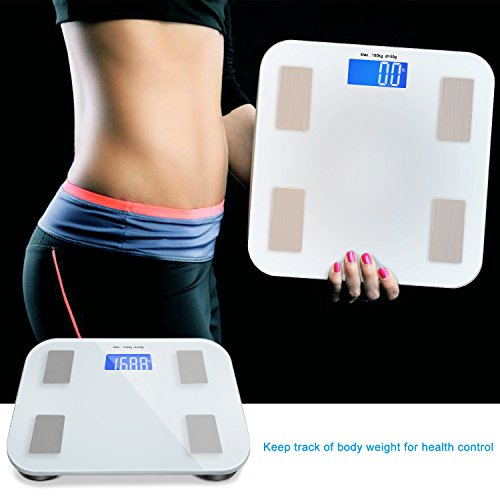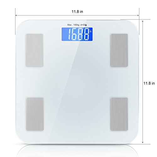 - HOUSEHOLD FAT SCALE: The fat scale takes tempered glass with the thickness of 6mm and stainless steel electrode plate; Product size: 11.8” x11.8” x1"; take up to 400 lbs for all family members to use.