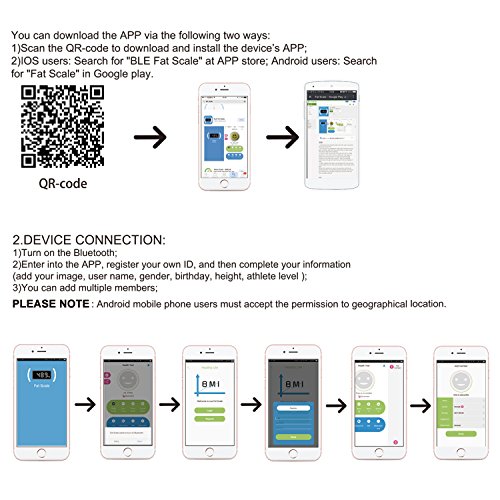 - DOWNLOAD APP ON DEVICES: Download the APP (Please follow the instruction in the picture), then turn on Bluetooth and APP, finish your information and go. Support Android 4.3 & iOS 8.0 and above. Now, you can have a try!