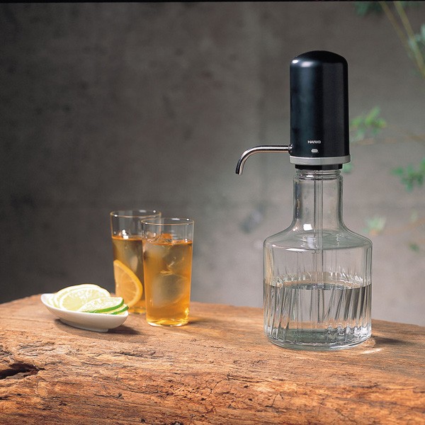 水をプッシュして注げるウォーターフォンです。上部をポンプ用に上下させると水を注ぐ事ができます。水を入れる容器はガラス製なので、臭い・色移りがしにくく、残量が一目で分ります。プレゼントやギフトにもおすすめ。