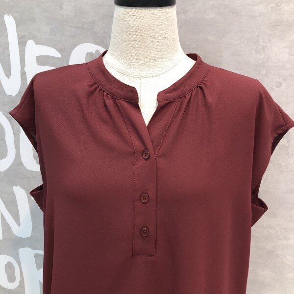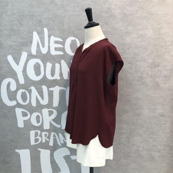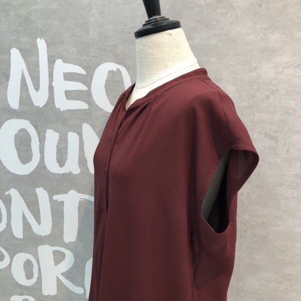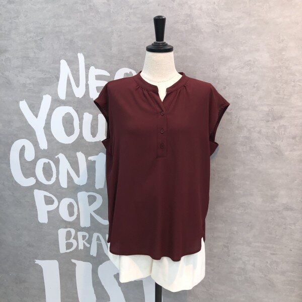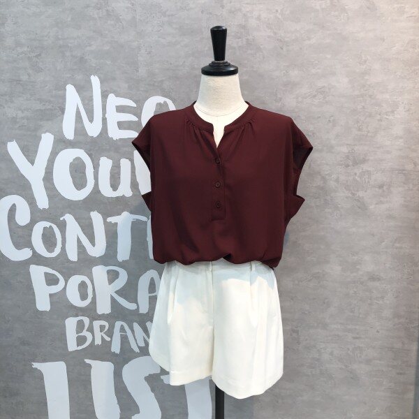 여유있게 떨어지는 루즈한핏이 멋스러우며 솔리드컬러의 모던한 오픈넥 블라우스입니다