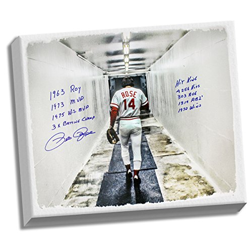 Pete Rose Autographed 28 Inch X 35 Inch Canvas In Tunnel With 9 Inscribed Autographed In Blue