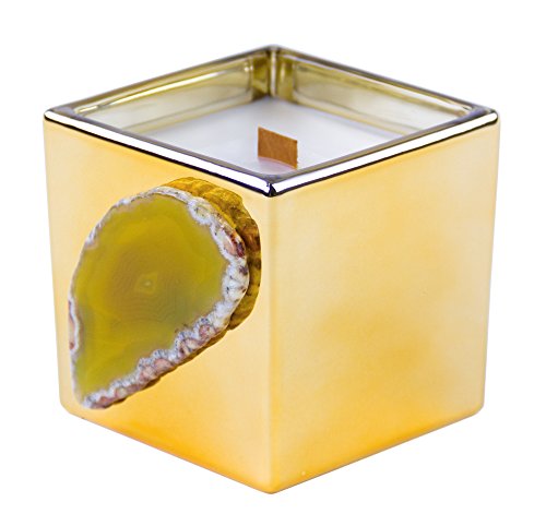 Exclusive Gold Mineral Agate Wooden Wick Candle with Gift Box, Wood Ash