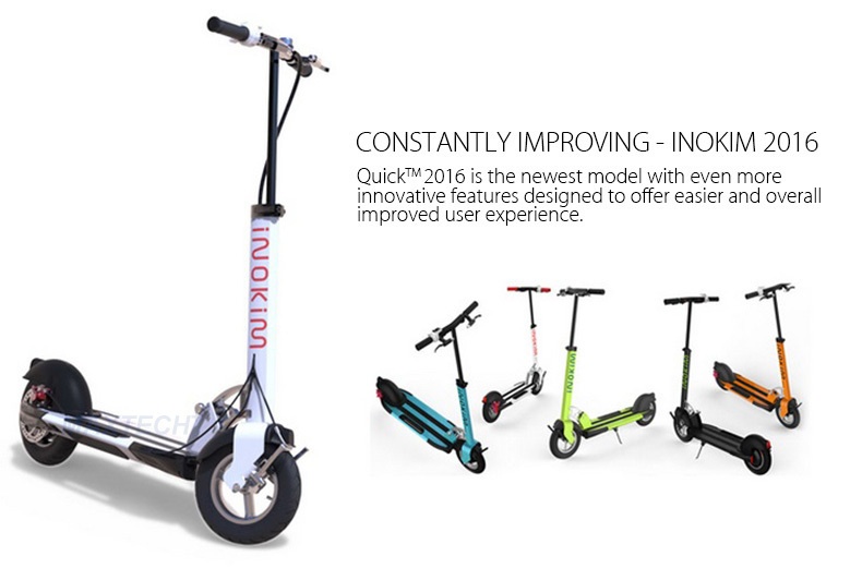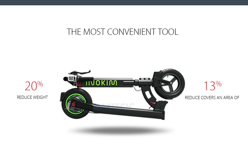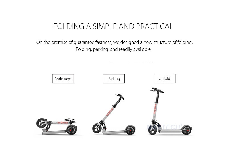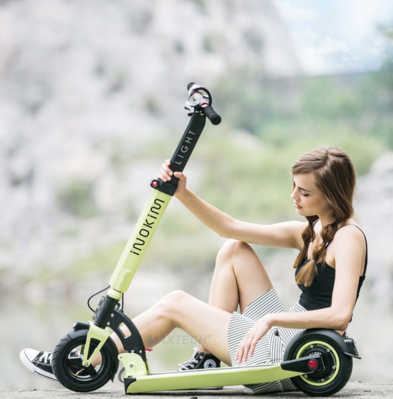 The INOKIM LIGHT has a more compact and streamline design compared to the more rugged INOKIM Quick series. Outfitted with smaller 8.5 inch tires and a lighter body at 12kg, the Light version definitely folds more compactly.The Light would appeal more to the urban commuter and is the true last mile solution whereas the Quick is more a longer range scooter.Braking System: Rear drum brakes. Loading Capacity: 100 kg. Tires: 8.5 inch pneumatic tires front and rear. Accessories: LCD Display, Bell. Comes with Charger and manual guide.