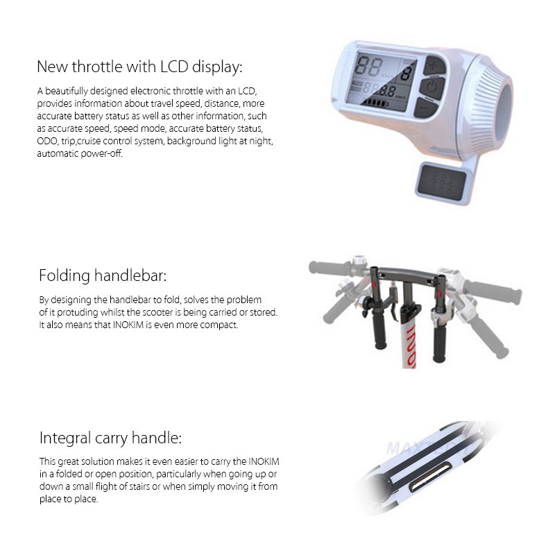 The INOKIM mini+ (thumb throttle version) is the latest electric scooter from the INOKIM line. The INOKIM mini+ is designed to be a lightweight portable last mile solution without compromising on safety and ride comfort.