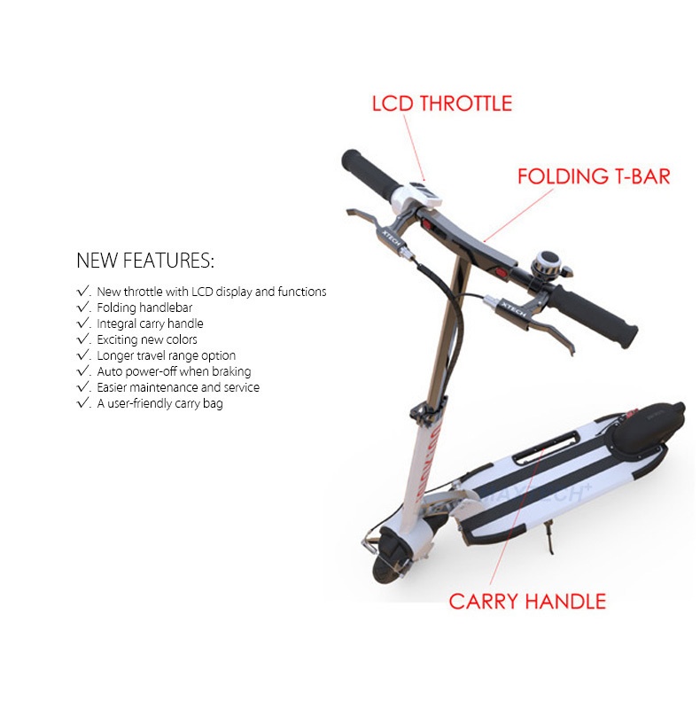 1) Overall the Mini+( actual name is Mini Force) is a nice product, light, comfortable ride, the price is reasonable, the bright spot is you can push to move with the 3 wheels standing on ground, like a luggage;
