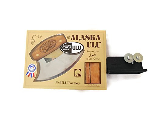 Alaska Ulu Knife Birch AC Bundle With Rada Sharpener, This Ulu Knife Can Be Used As Mezzaluna Chopper, Bolo Rolling Knife And Chopped Salad Tool