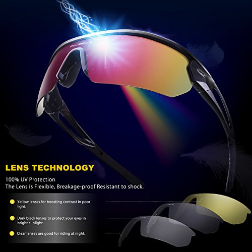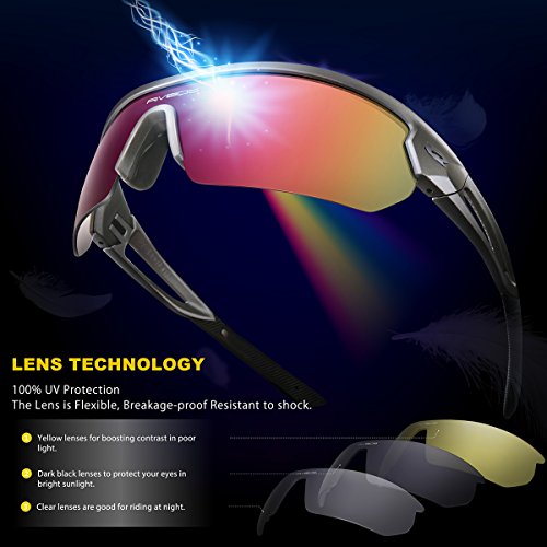 RIVBOS Sport Sunglasses are designed for driving, cycling and all Outdoor Activities. Lens made of shatterproof unbreakable PC material are durable enough for long time using.